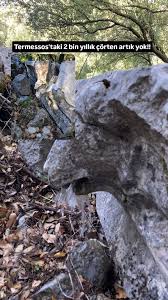 Antalya’daki Termessos Antik Kentinde bulunan 2 bin yıllık aslan başlı çörten, kırılarak tahrip edildi.— Olayla ilgili suç duyurusunda bulunuldu.